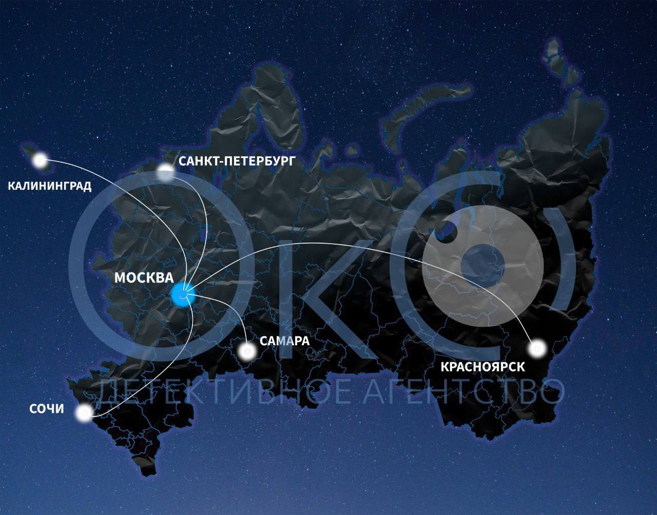 Детективное агентство «ОкО» выполняет все виды розыскной деятельности как в Москве, так и по всей территории России и СНГ. Реальна работа за границей, услуги детектива поддерживаются полицией других стран.